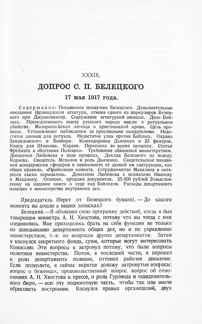 Допрос С. П. Белецкого. 17 мая 1917 года