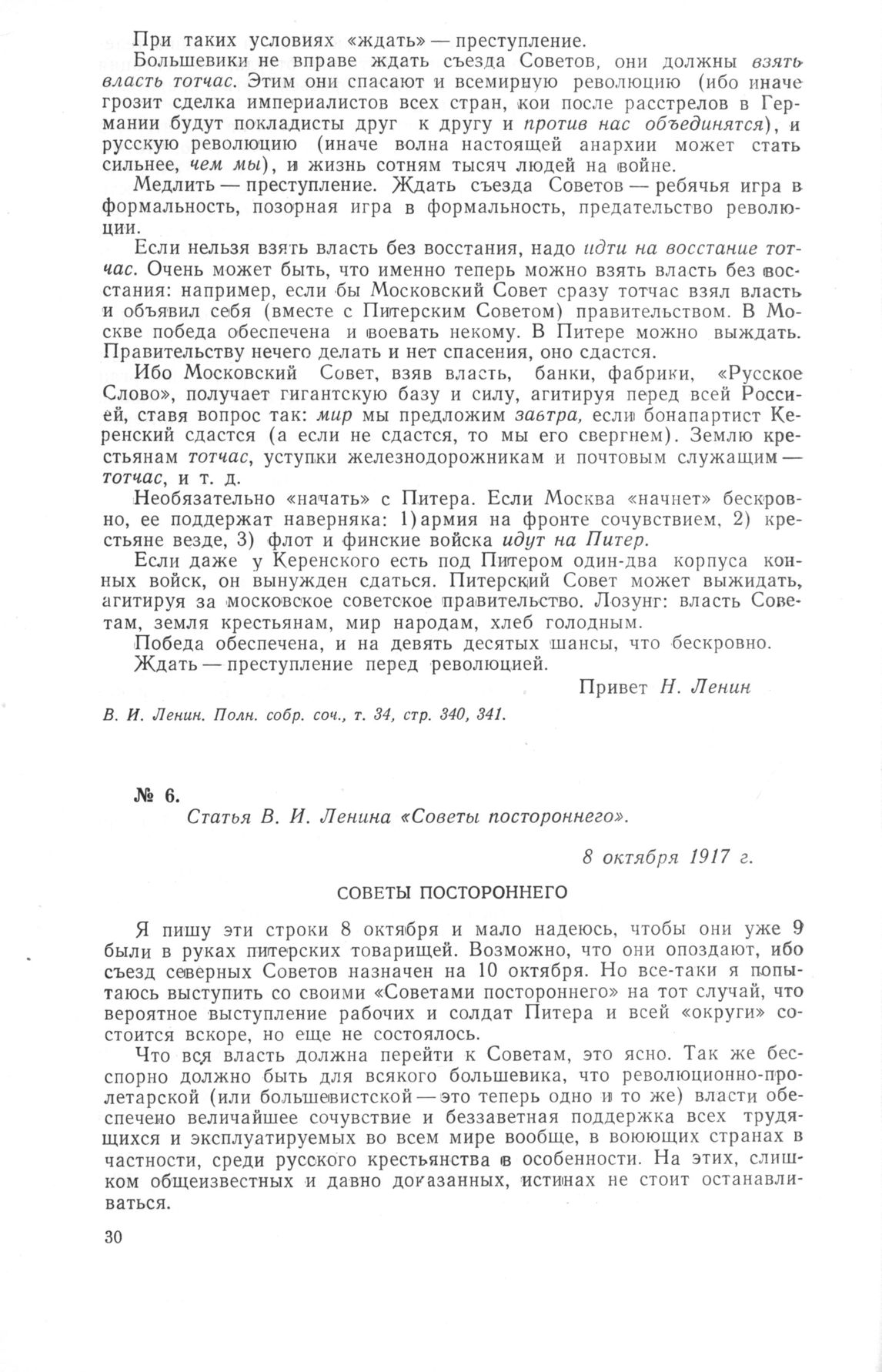 Статья В.И. Ленина «Советы постороннего». 8 октября 1917 г. // В.И. Ленин. Полн. собр. соч., т. 34, стр. 382—384.