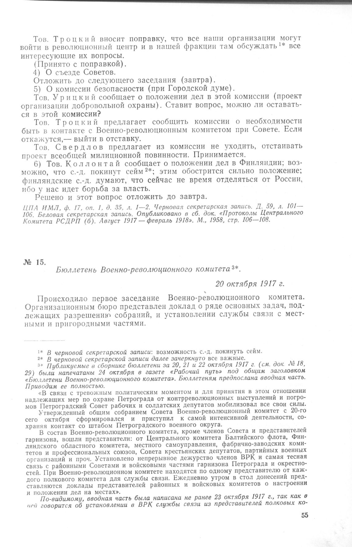 Петроградский военно-революционный комитет: Док. и материалы в 3 т. Т. 1. — М.: Наука, 1966.