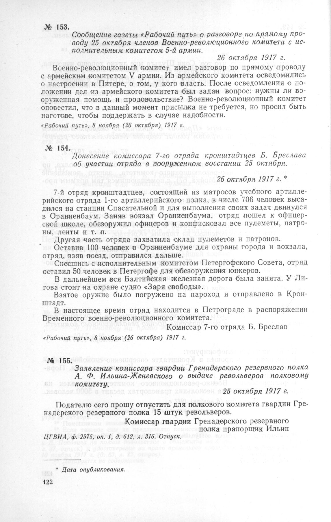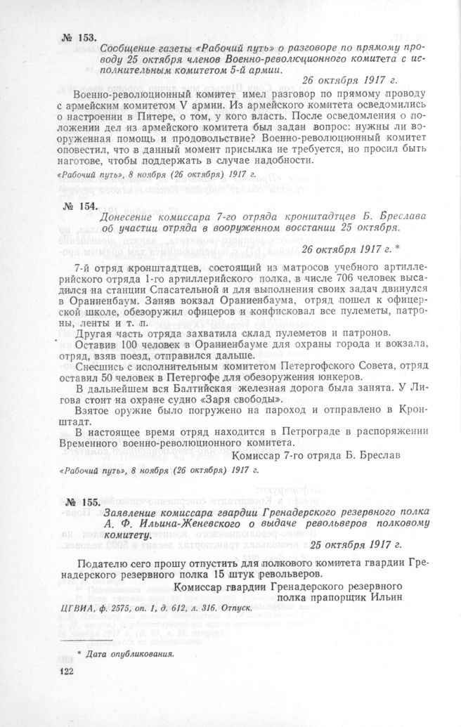 Донесение комиссара 7-го отряда кронштадтцев Б. Бреслава об участии отряда в вооруженном восстании 25 октября. 26 октября 1917 г. // «Рабочий путь», 8 ноября (26 октября) 1917 г.