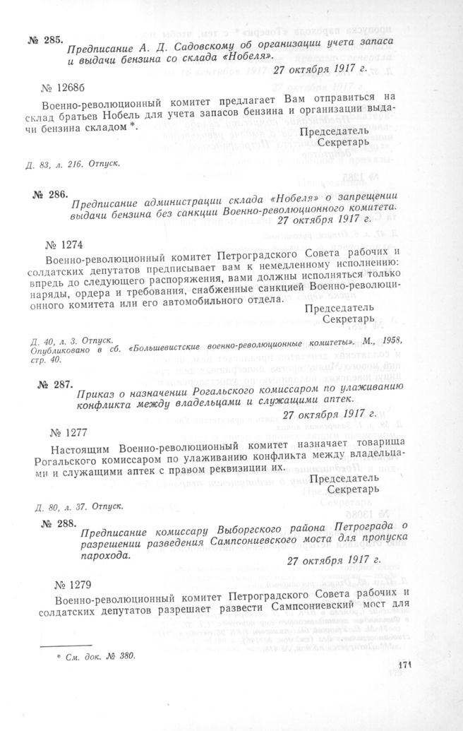 Петроградский военно-революционный комитет: Док. и материалы в 3 т. Т. 1. — М.: Наука, 1966.