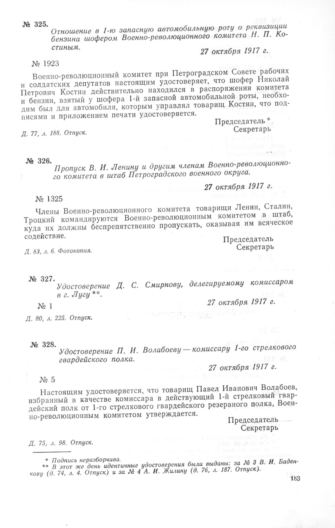 Петроградский военно-революционный комитет: Док. и материалы в 3 т. Т. 1. — М.: Наука, 1966.