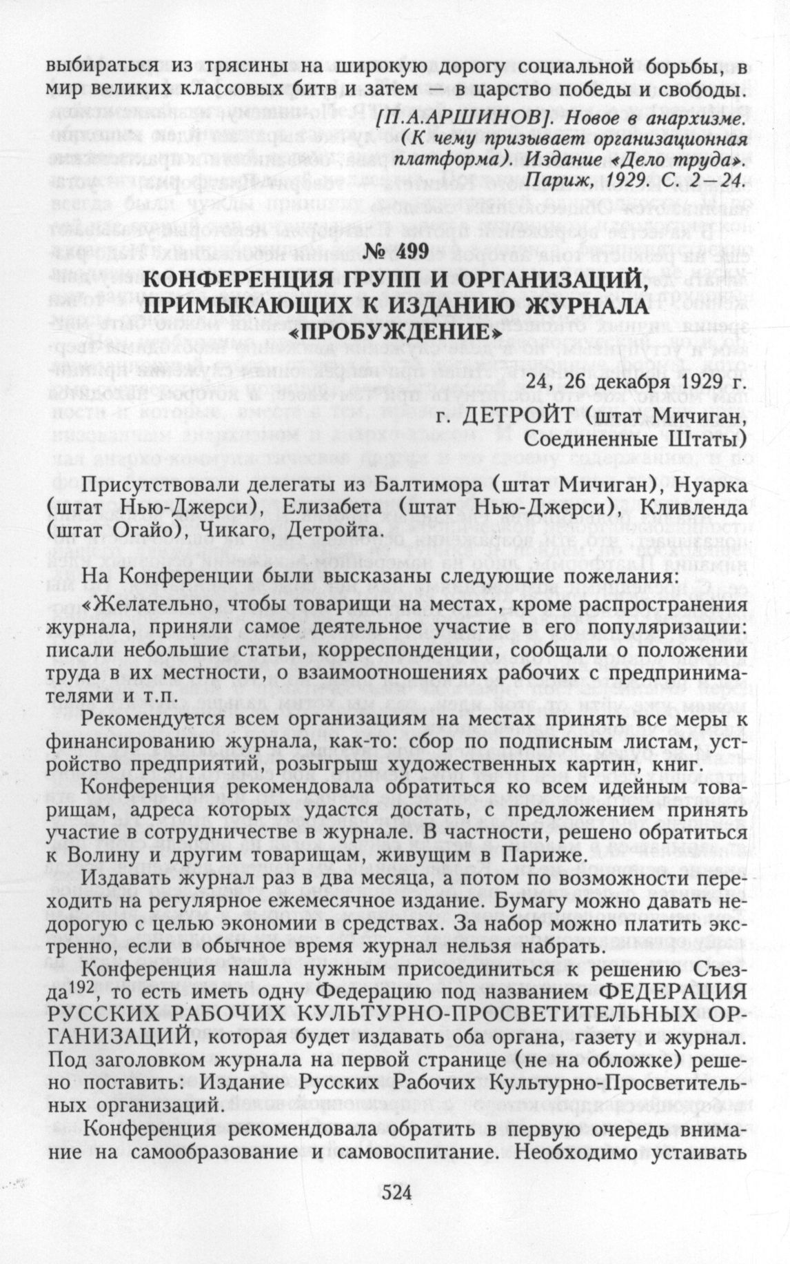 Главная Серия «Политические партии России. Конец XIX – первая треть ХХ века... Анархисты. Документы и материалы. 1883—1935 гг. В 2 тт. Анархисты. Документы и материалы. 1883—1935 гг. В 2 тт. Т. 2. 1917—... Документы Конференция групп и организаций, примыкающих к изданию журнала «Про...