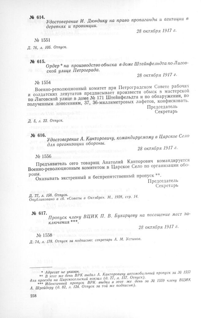 Петроградский военно-революционный комитет: Док. и материалы в 3 т. Т. 1. — М.: Наука, 1966.
