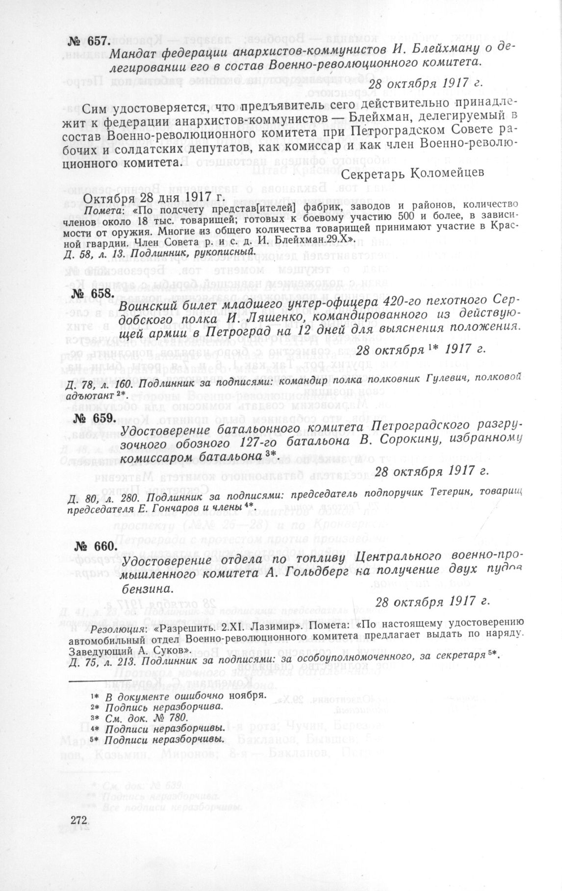 Мандат федерации анархистов-коммунистов И. Блейхману о делегировании его в состав Военно-революционного комитета. 28 октября 1917 г.