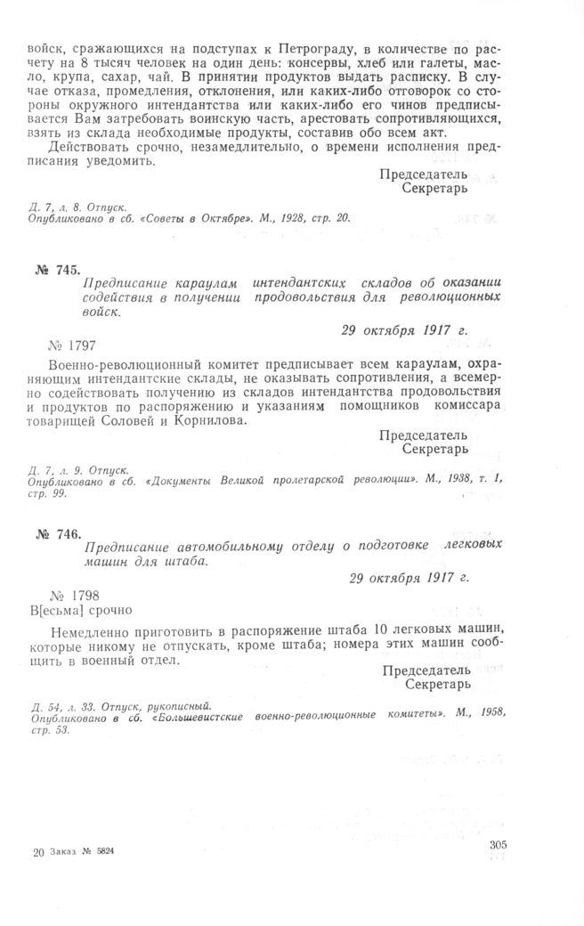 Предписание караулам интендантских складов об оказании содействия в получении продовольствия для революционных войск. 29 октября 1917 г. // Д. 7, л. 9. Отпуск. Опубликовано в сб. «Документы Великой пролетарской революции». М., 1938, т. 1, стр. 99.