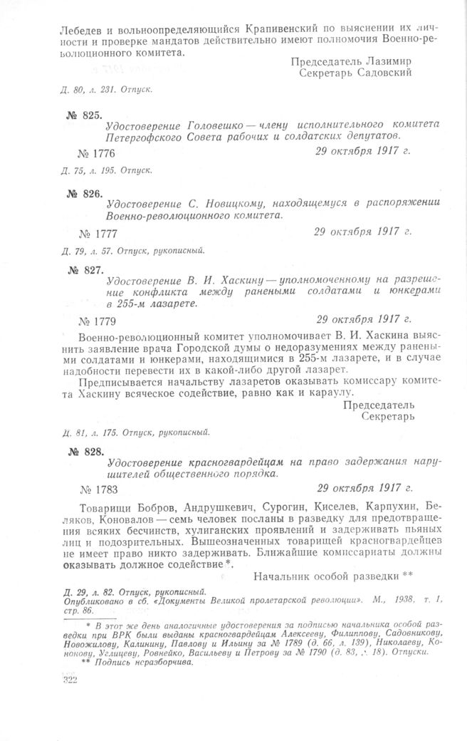 Петроградский военно-революционный комитет: Док. и материалы в 3 т. Т. 1. — М.: Наука, 1966.