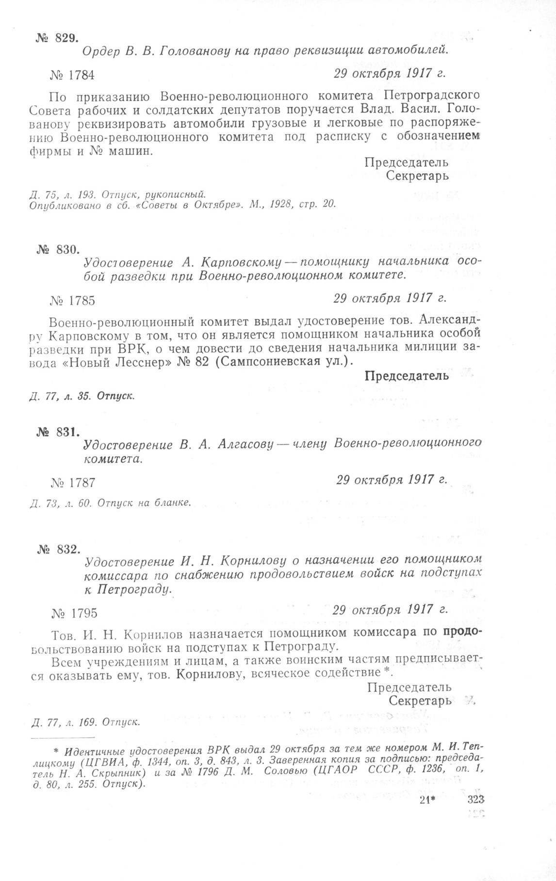 Петроградский военно-революционный комитет: Док. и материалы в 3 т. Т. 1. — М.: Наука, 1966.