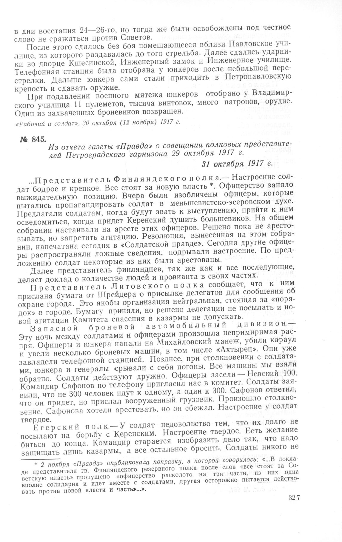 Из отчета газеты «Правда» о совещании полковых представителей Петроградского гарнизона 29 октября 1917 г. 31 октября 1917 г.