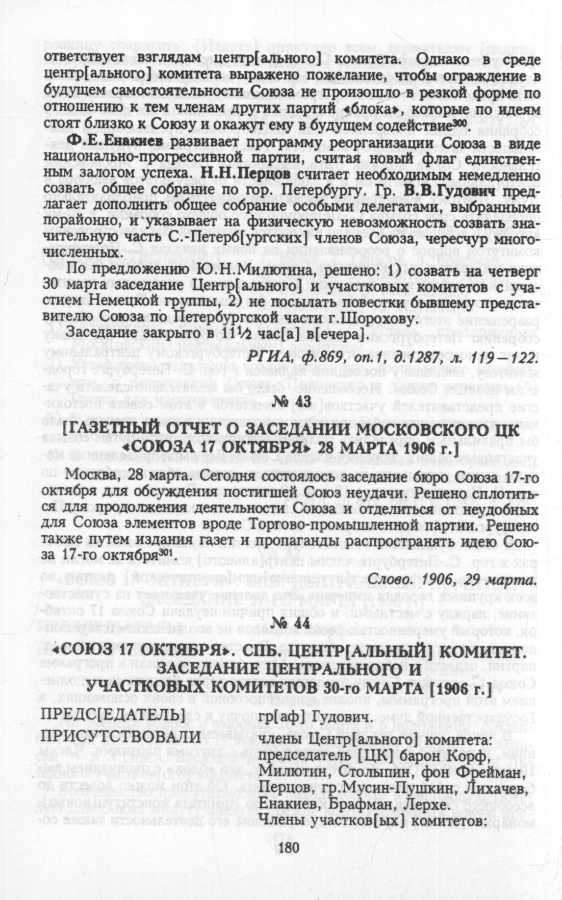 [Газетный отчет о заседании Московского ЦК «Союза 17 октября» 28 марта 1906 г.] // Слово. 1906, 29 марта.