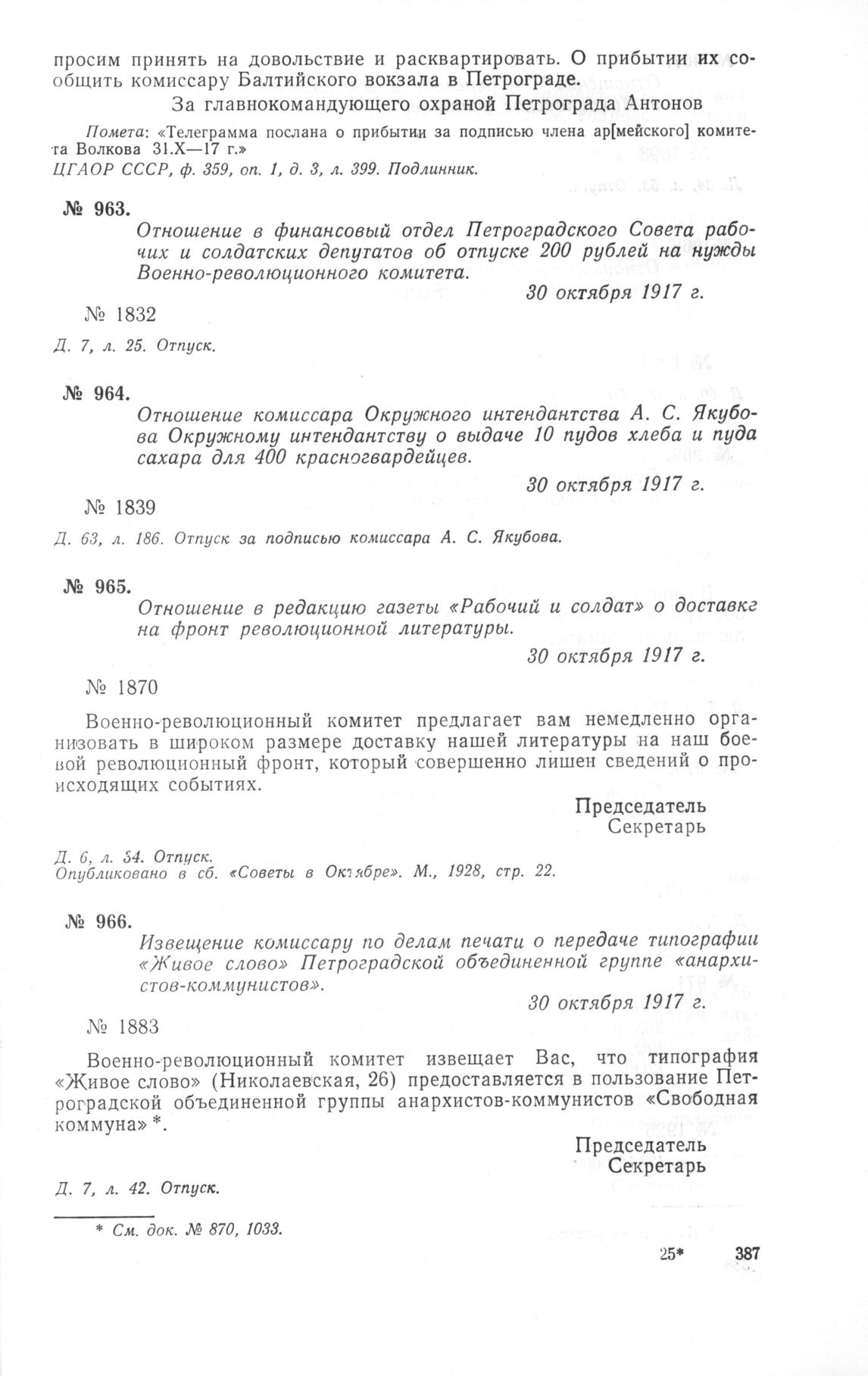 Петроградский военно-революционный комитет: Док. и материалы в 3 т. Т. 1. — М.: Наука, 1966.