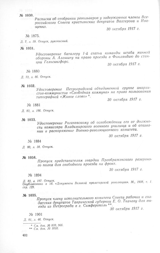 Петроградский военно-революционный комитет: Док. и материалы в 3 т. Т. 1. — М.: Наука, 1966.