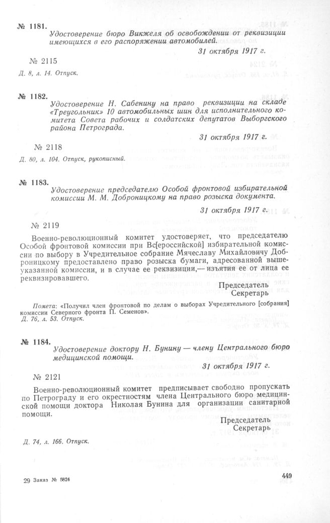 Петроградский военно-революционный комитет: Док. и материалы в 3 т. Т. 1. — М.: Наука, 1966.