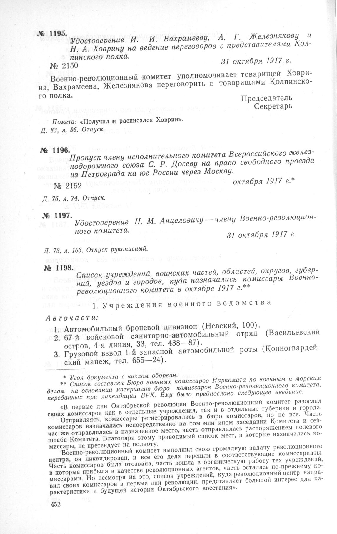 Петроградский военно-революционный комитет: Док. и материалы в 3 т. Т. 1. — М.: Наука, 1966.