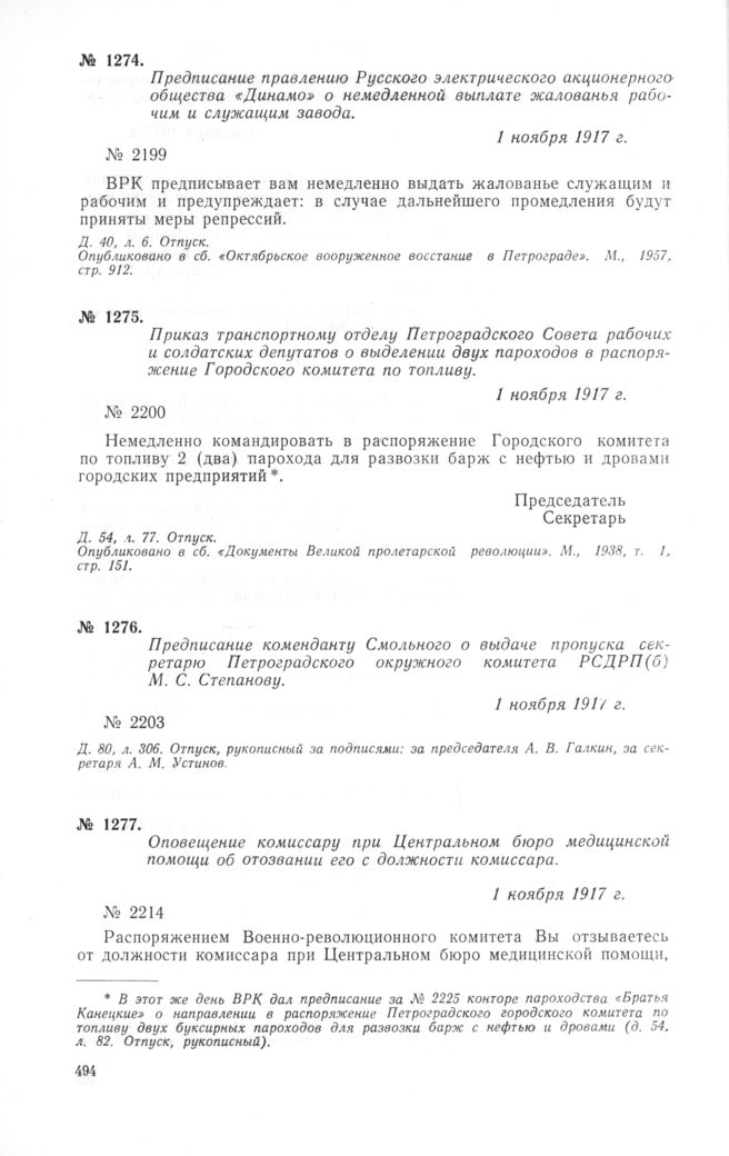 Предписание правлению Русского электрического акционерного общества «Динамо» о немедленной выплате жалованья рабочим и служащим завода. 1 ноября 1917 г. // Д. 40, л. 6. Отпуск. Опубликовано в сб. «Октябрьское вооруженное восстание в Петрограде». М., 1957, стр. 912.