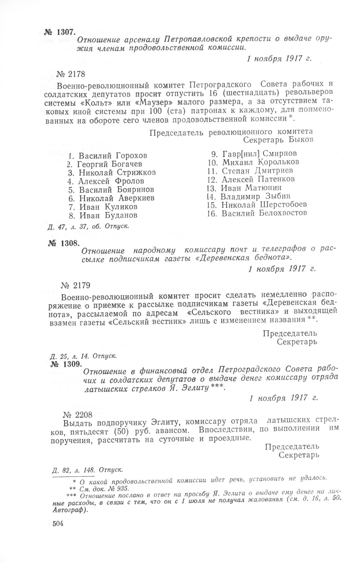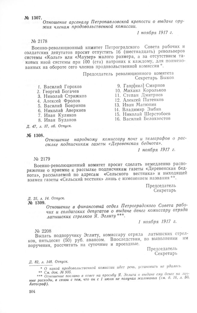Петроградский военно-революционный комитет: Док. и материалы в 3 т. Т. 1. — М.: Наука, 1966.