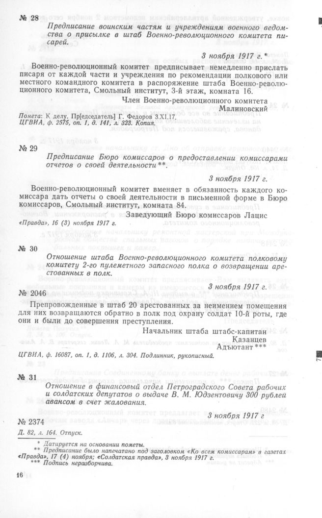 Петроградский военно-революционный комитет: Док. и материалы в 3 т. Т. 2. — М.: Наука, 1966.