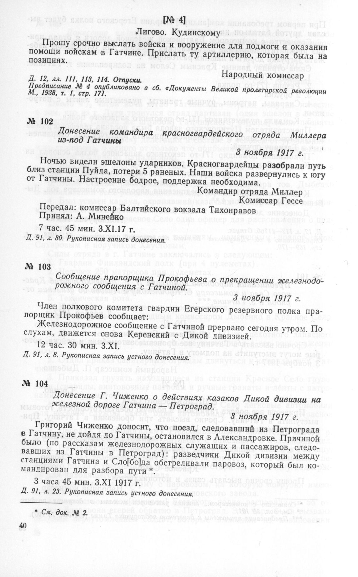 Сообщение прапорщика Прокофьева о прекращении железнодорожного сообщения с Гатчиной. 3 ноября 1917 г.