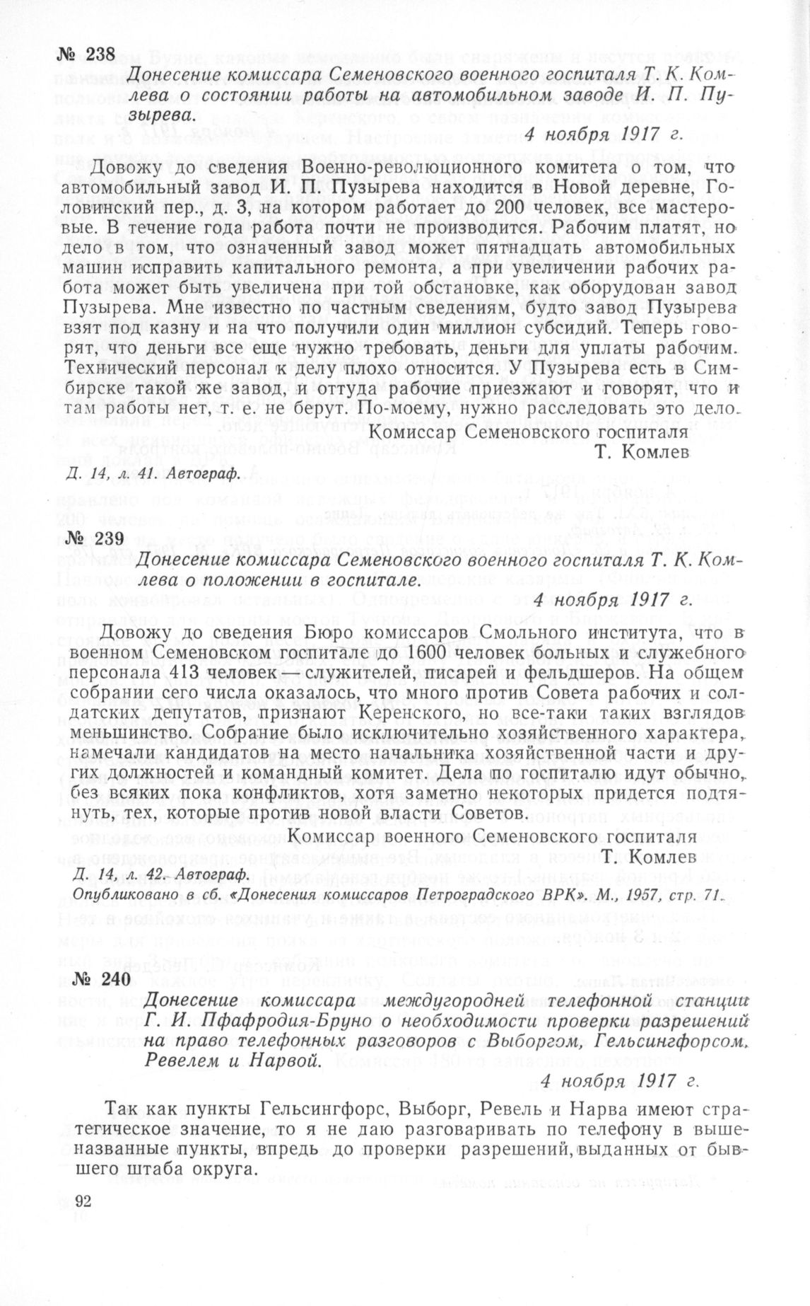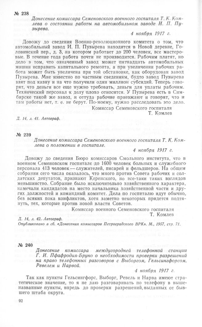 Петроградский военно-революционный комитет: Док. и материалы в 3 т. Т. 2. — М.: Наука, 1966.