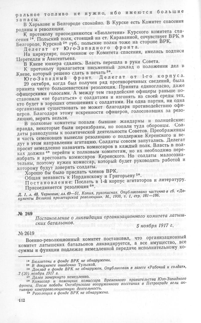 Постановление о ликвидации организационного комитета латышских батальонов. 5 ноября 1917 г.
