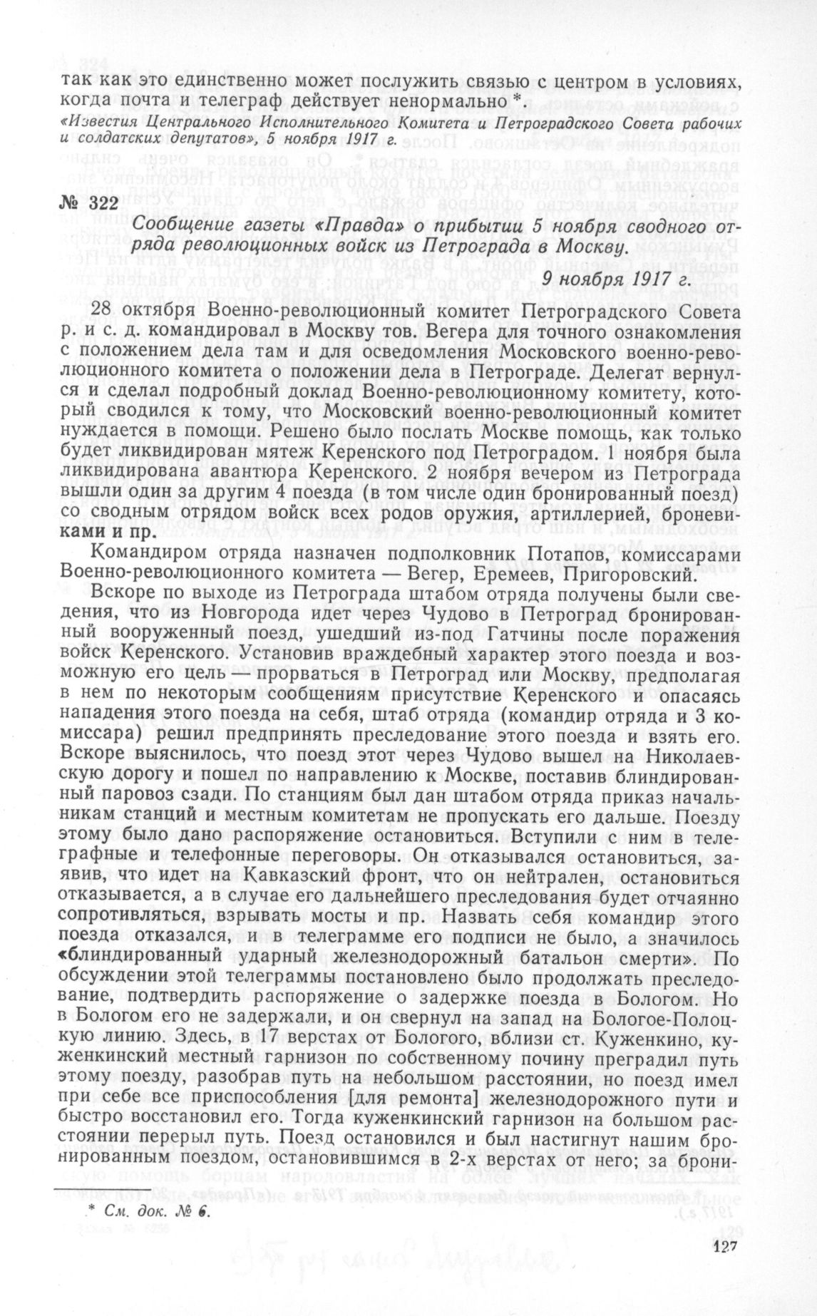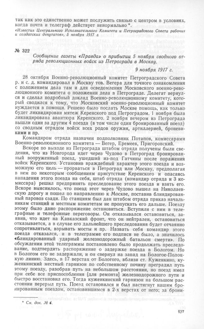 Сообщение газеты «Правда» о прибытии 5 ноября сводного отряда революционных войск из Петрограда в Москву. 9 ноября 1917 г. // «Правда», 22 (9) ноября 1917 г.