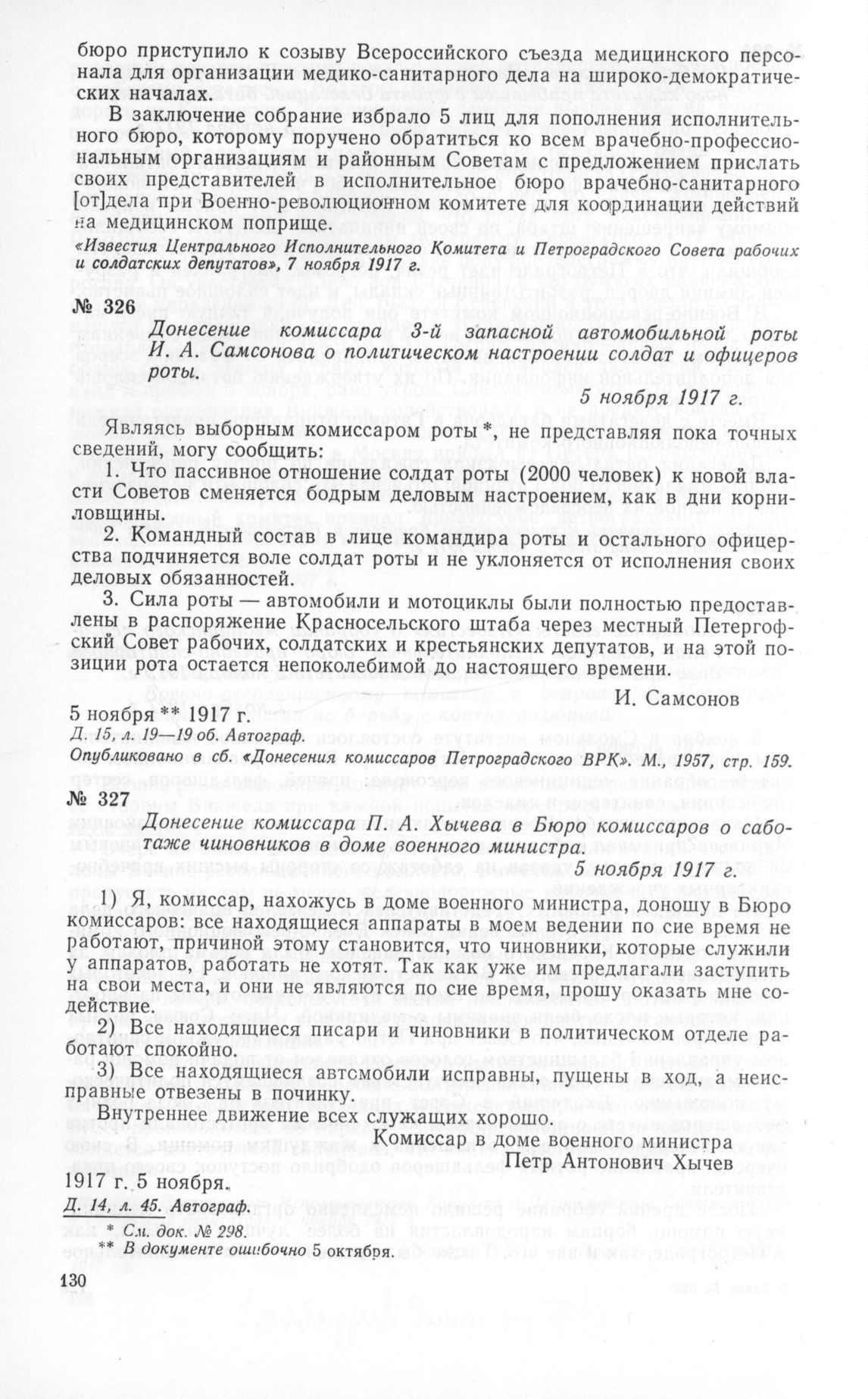 Донесение комиссара П. А. Хычева в Бюро комиссаров о саботаже чиновников в доме военного министра. 5 ноября 1917 г.