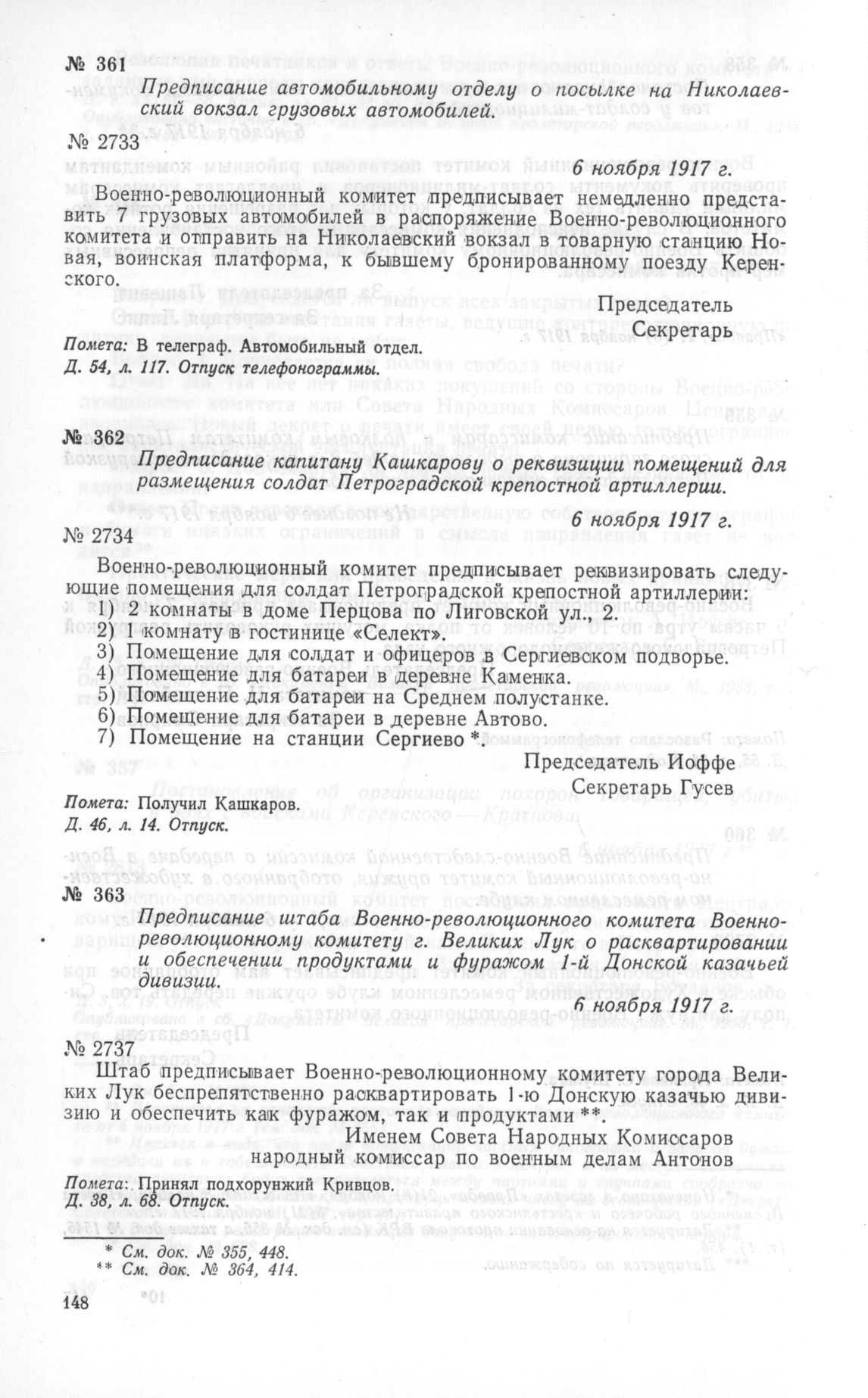 Петроградский военно-революционный комитет: Док. и материалы в 3 т. Т. 2. — М.: Наука, 1966.