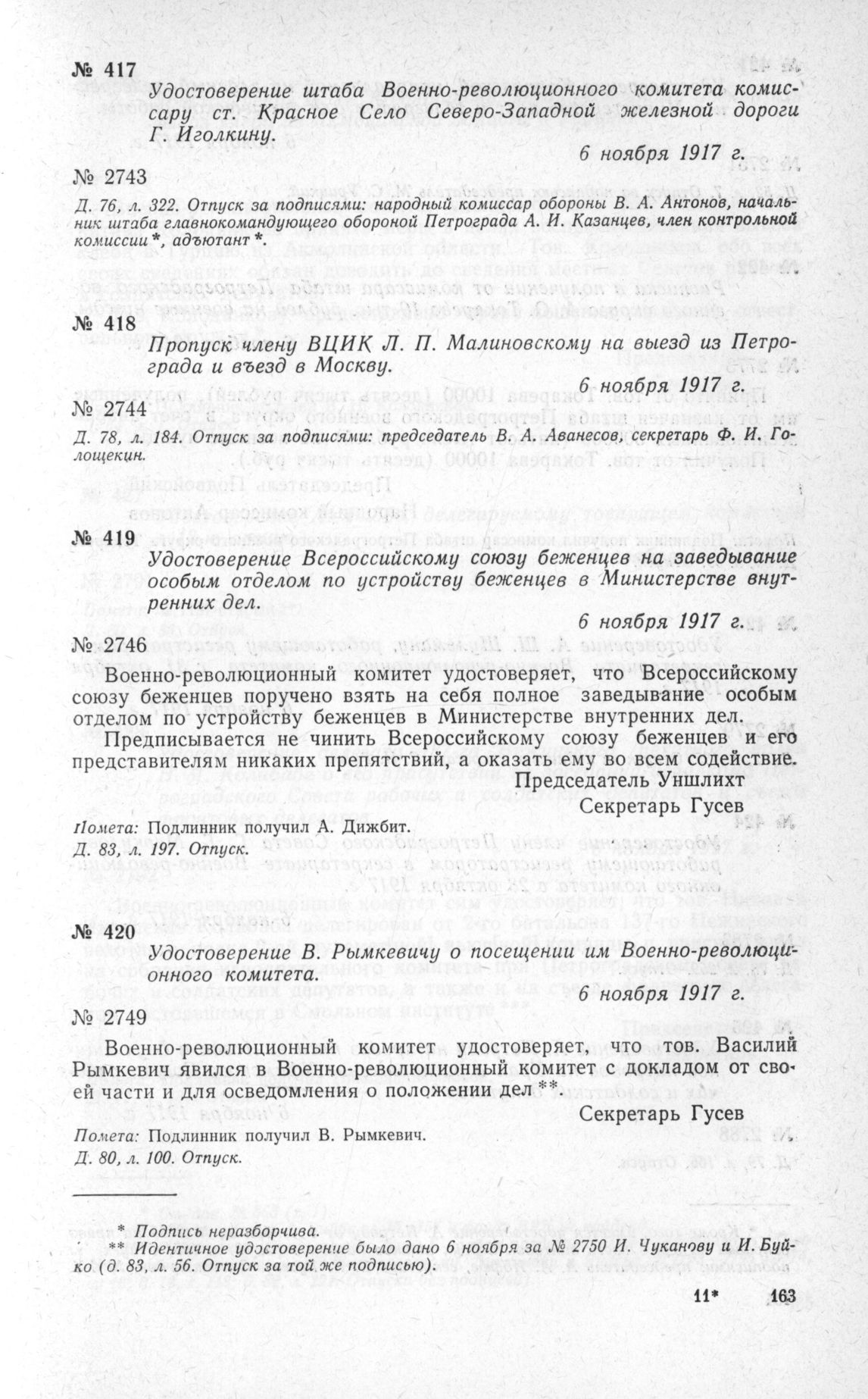 Петроградский военно-революционный комитет: Док. и материалы в 3 т. Т. 2. — М.: Наука, 1966.