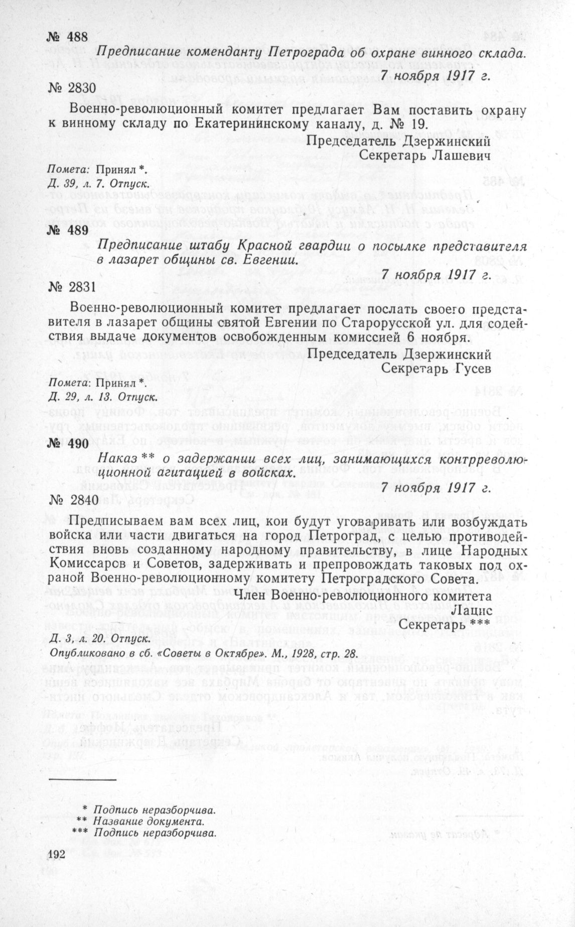 Предписание штабу Красной гвардии о посылке представителя в лазарет общины св. Евгении. 7 ноября 1917 г.