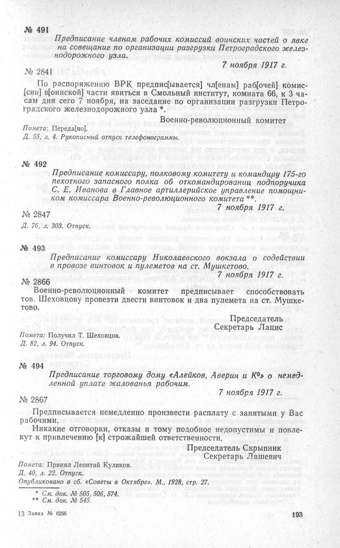 Петроградский военно-революционный комитет: Док. и материалы в 3 т. Т. 2. — М.: Наука, 1966.