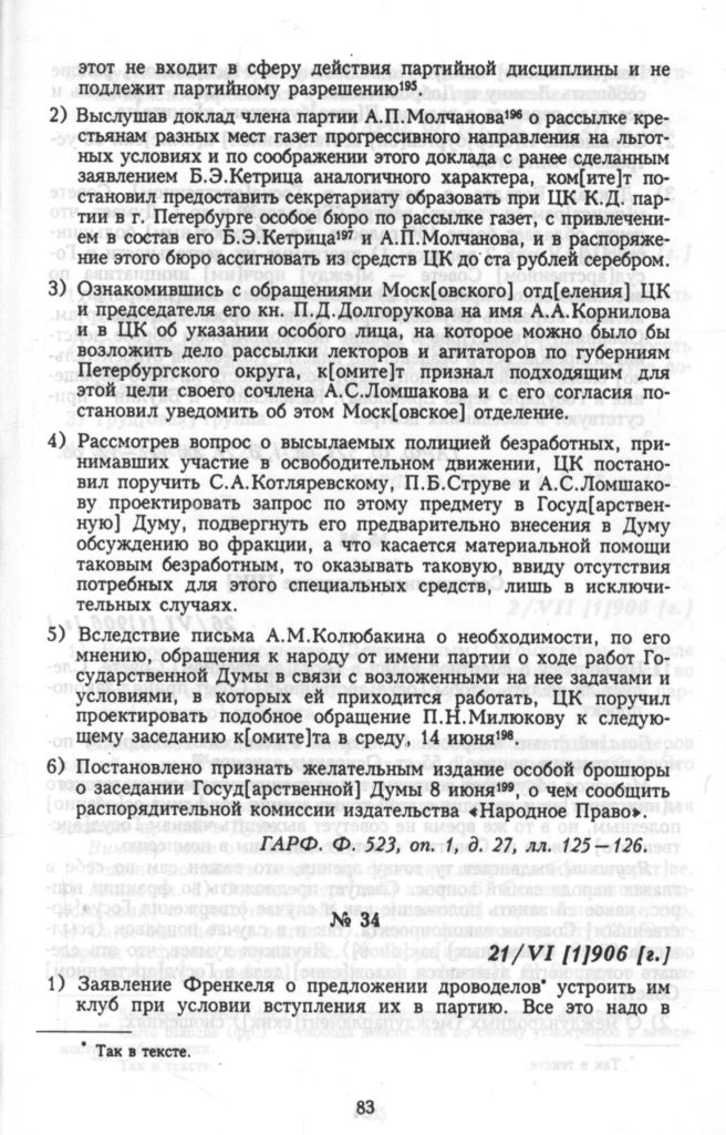 Протоколы Центрального Комитета конституционно-демократической партии. 21/VI [1]906 [г.]