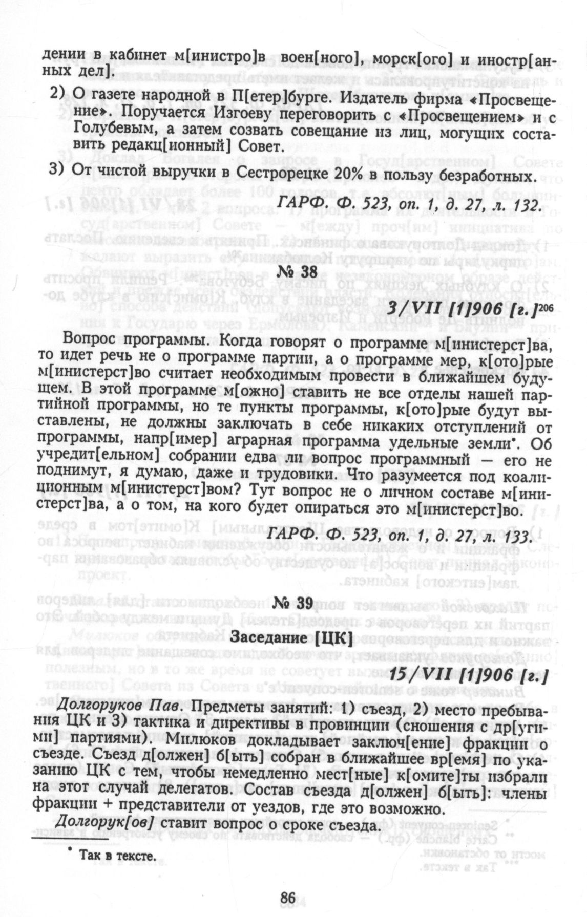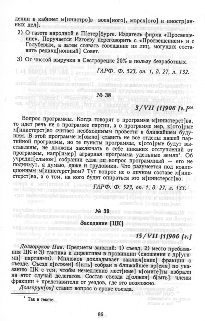 Протоколы Центрального Комитета конституционно-демократической партии. 3/VII [1]906 [г.]