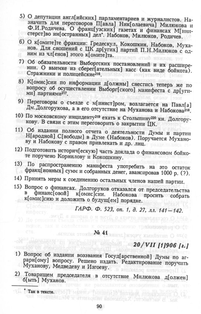 Протоколы Центрального Комитета конституционно-демократической партии. 20/VII [1]906 [г.]