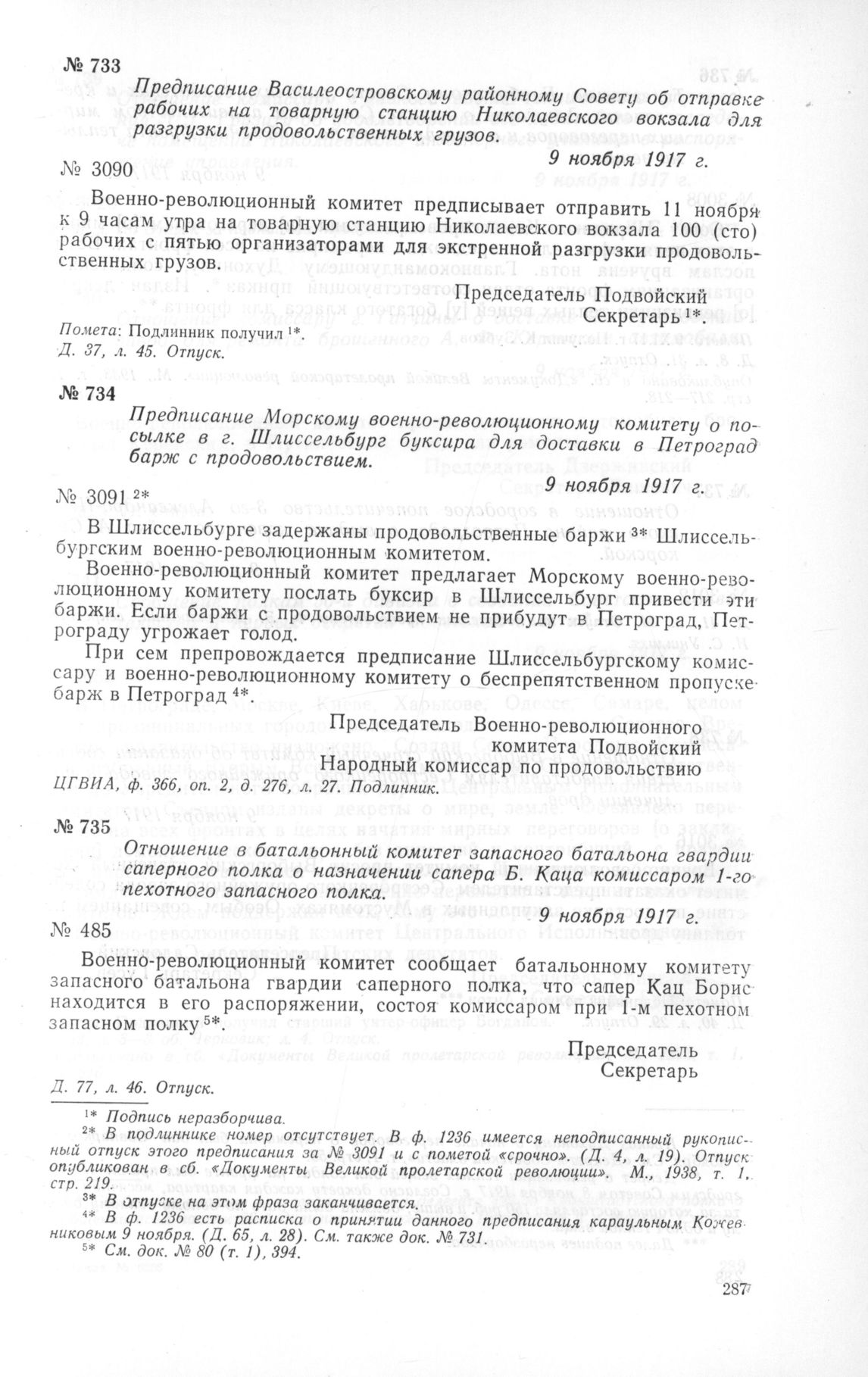 Петроградский военно-революционный комитет: Док. и материалы в 3 т. Т. 2. — М.: Наука, 1966.