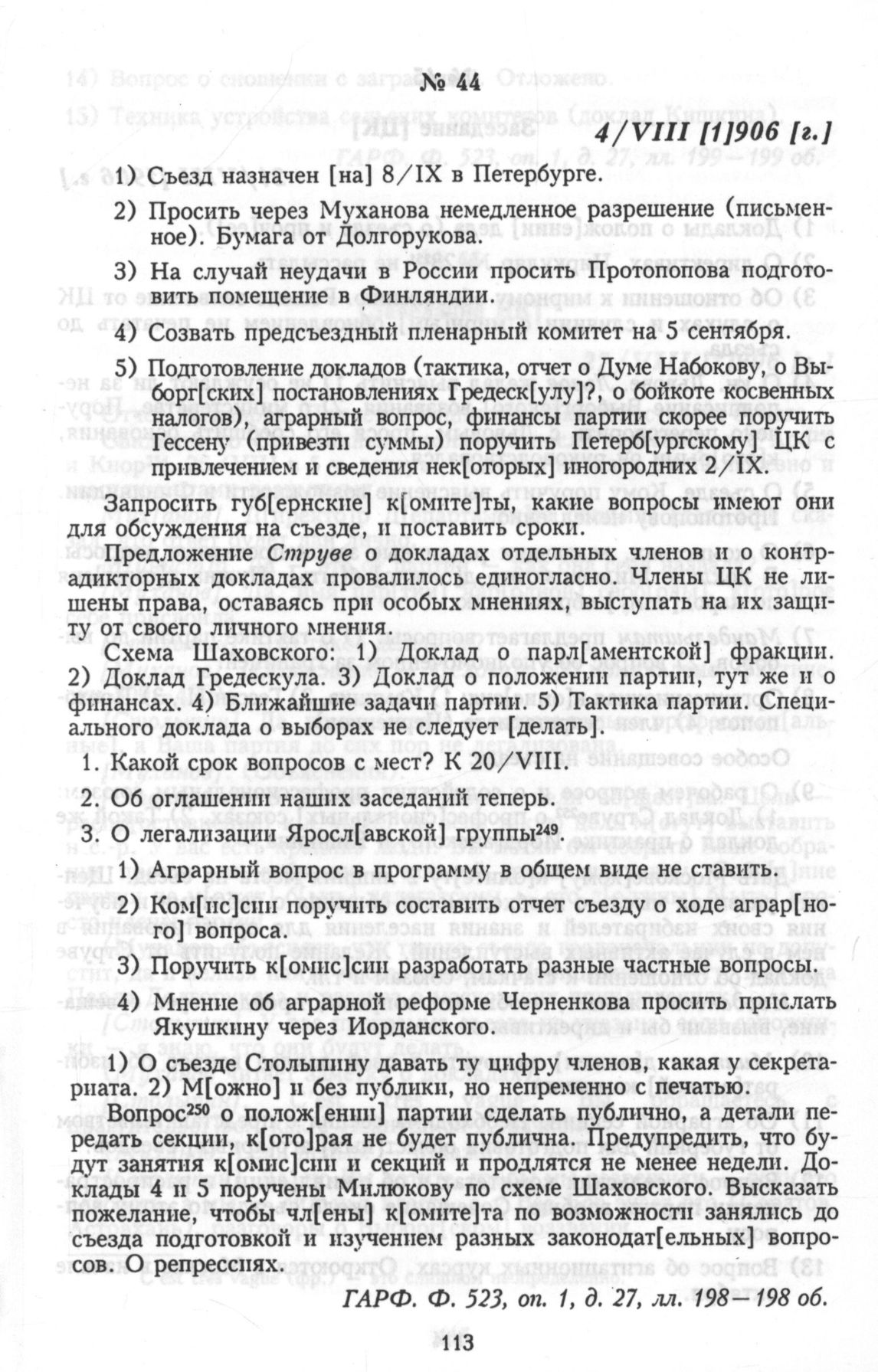 Протоколы Центрального Комитета конституционно-демократической партии. 4/VIII [1]906 [г.]