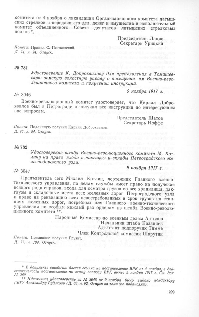 Петроградский военно-революционный комитет: Док. и материалы в 3 т. Т. 2. — М.: Наука, 1966.