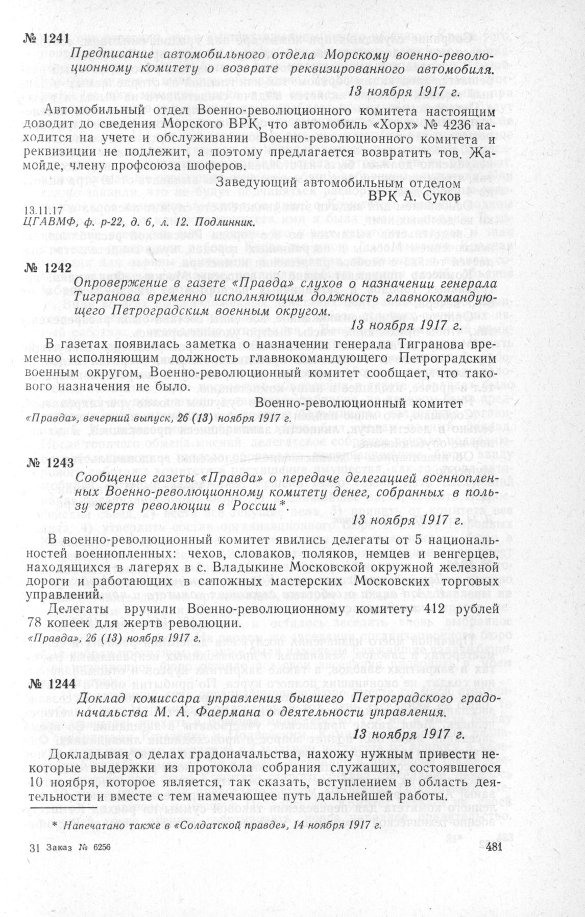 Петроградский военно-революционный комитет: Док. и материалы в 3 т. Т. 2. — М.: Наука, 1966.