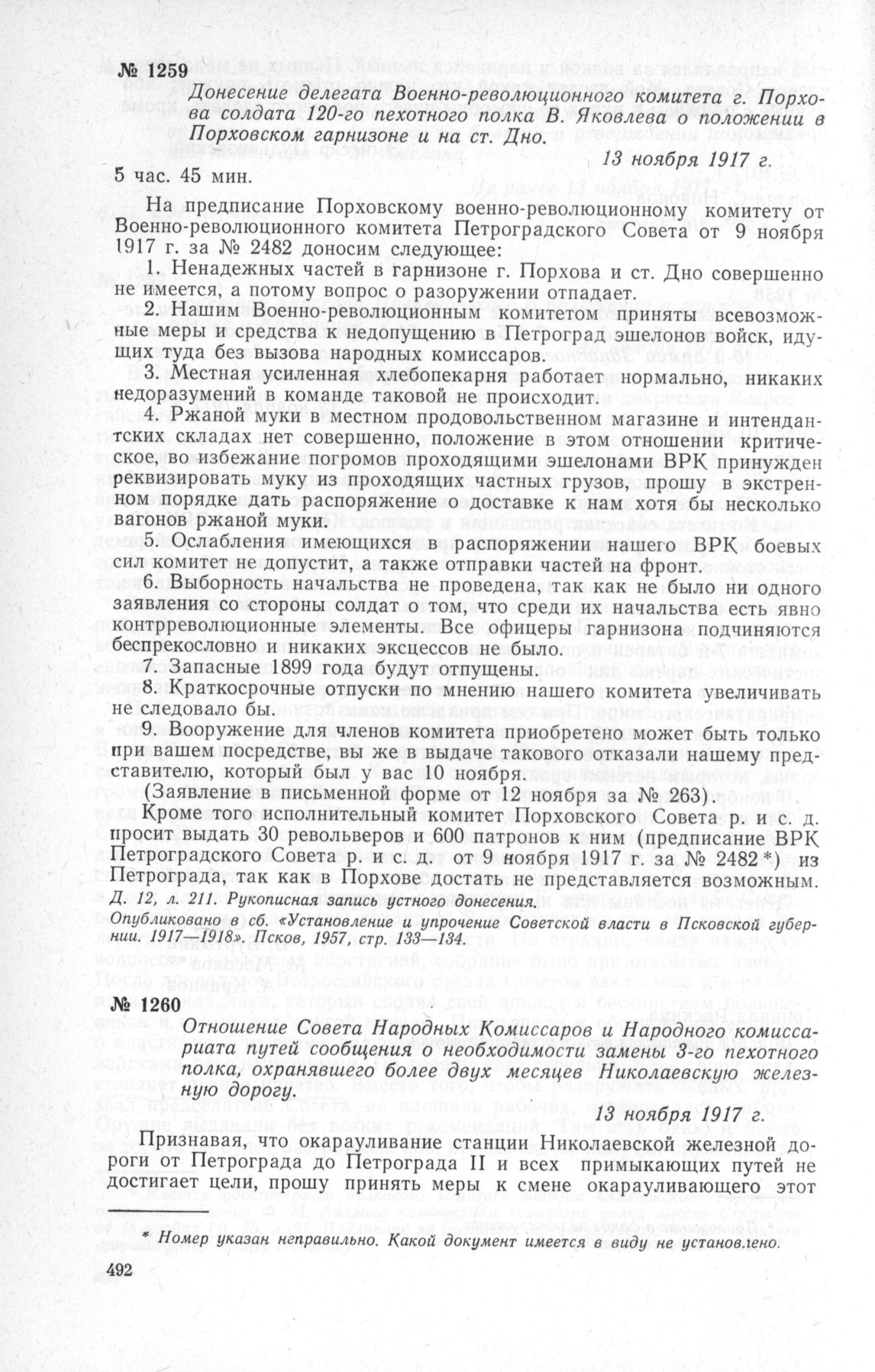 Отношение Совета Народных Комиссаров и Народного комиссариата путей сообщения о необходимости замены 3-го пехотного полка, охранявшего более двух месяцев Николаевскую железную дорогу. 13 ноября 1917 г.