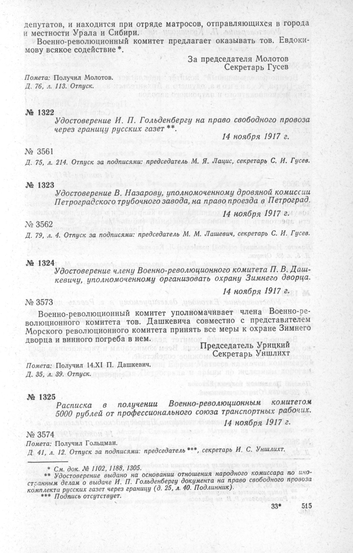 Петроградский военно-революционный комитет: Док. и материалы в 3 т. Т. 2. — М.: Наука, 1966.