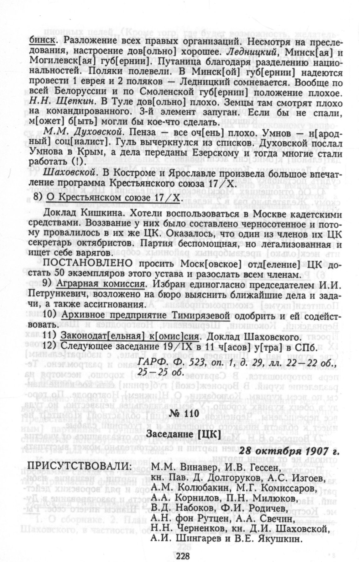 Протоколы Центрального Комитета конституционно-демократической партии. Заседание [ЦК]. 28 октября 1907 г.