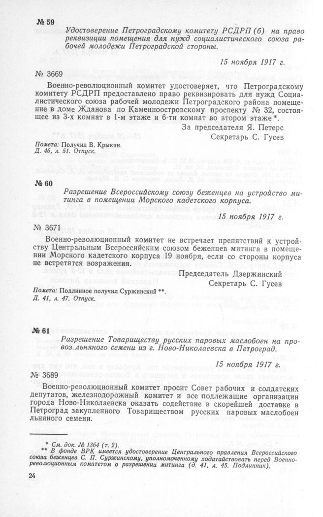 Петроградский Военно-революционный комитет: Док. и материалы в 3 т. Т. 3. — М.: Наука, 1967.