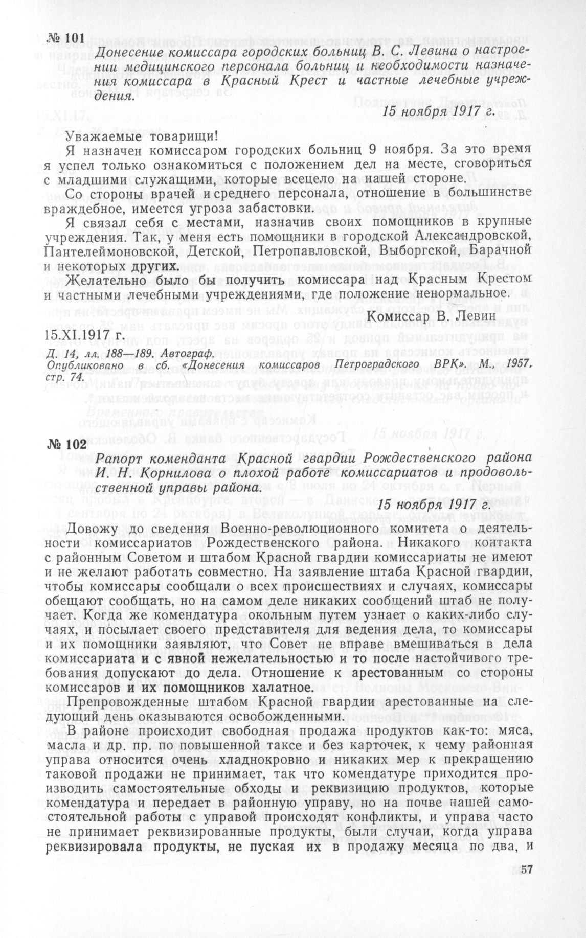 Рапорт коменданта Красной гвардии Рождественского района И. Н. Корнилова о плохой работе комиссариатов и продовольственной управы района. 15 ноября 1917 г.