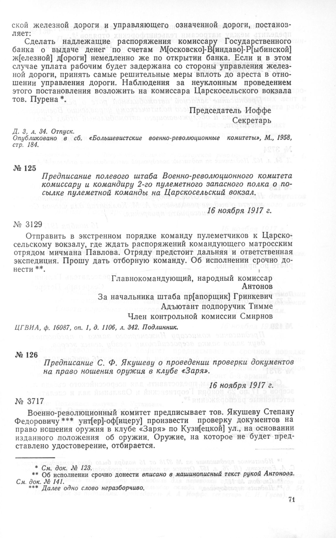 Петроградский Военно-революционный комитет: Док. и материалы в 3 т. Т. 3. — М.: Наука, 1967.