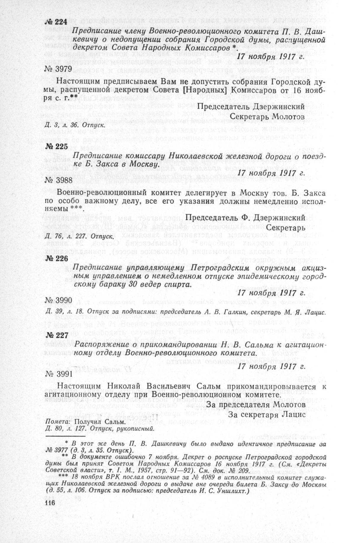 Петроградский Военно-революционный комитет: Док. и материалы в 3 т. Т. 3. — М.: Наука, 1967.