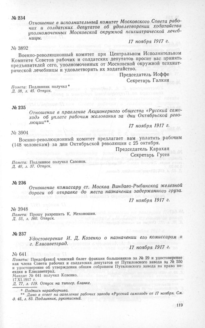 ЦГАОР СССР, ф. 1236, д. 77, л. 119. Отпуск на типогр. бланке.