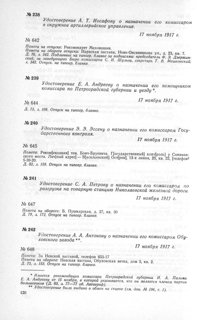 Удостоверение Э. Э. Эссену о назначении его комиссаром Государственного контроля. 17 ноября 1917 г. // ЦГАОР СССР, ф. 1236, д. 82, л. 158. Отпуск на типогр. бланке.