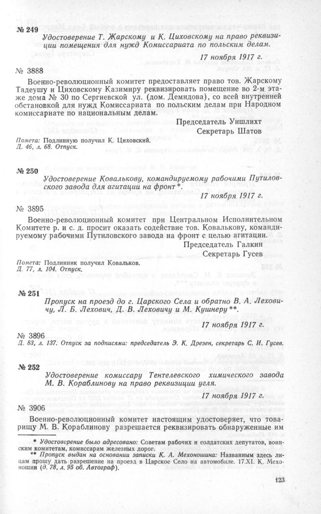Петроградский Военно-революционный комитет: Док. и материалы в 3 т. Т. 3. — М.: Наука, 1967.