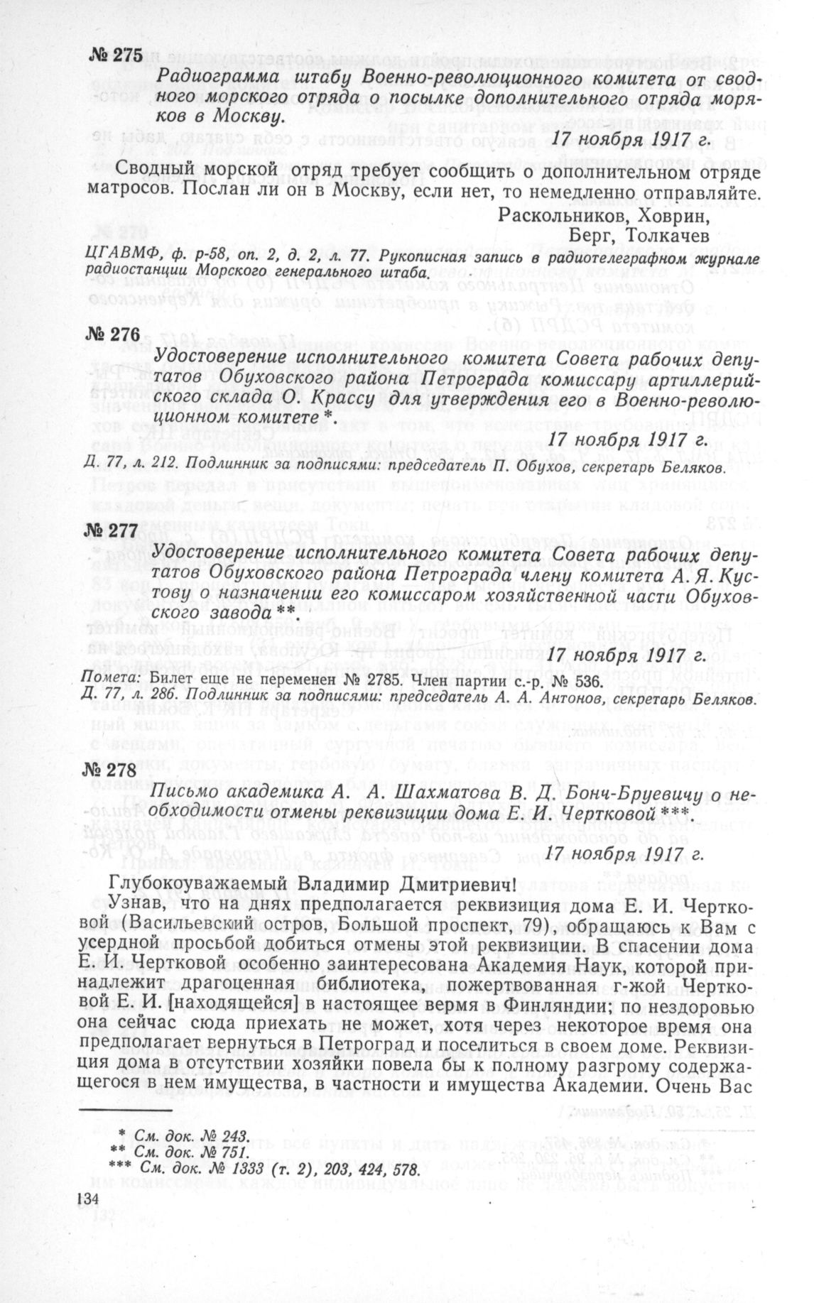 Радиограмма штабу Военно-революционного комитета от сводного морского отряда о посылке дополнительного отряда моряков в Москву. 17 ноября 1917 г. // ЦГАВМФ, ф. р-58, оп. 2, д. 2. л. 77. Рукописная запись в радиотелеграфном журнале радиостанции Морского генерального штаба.