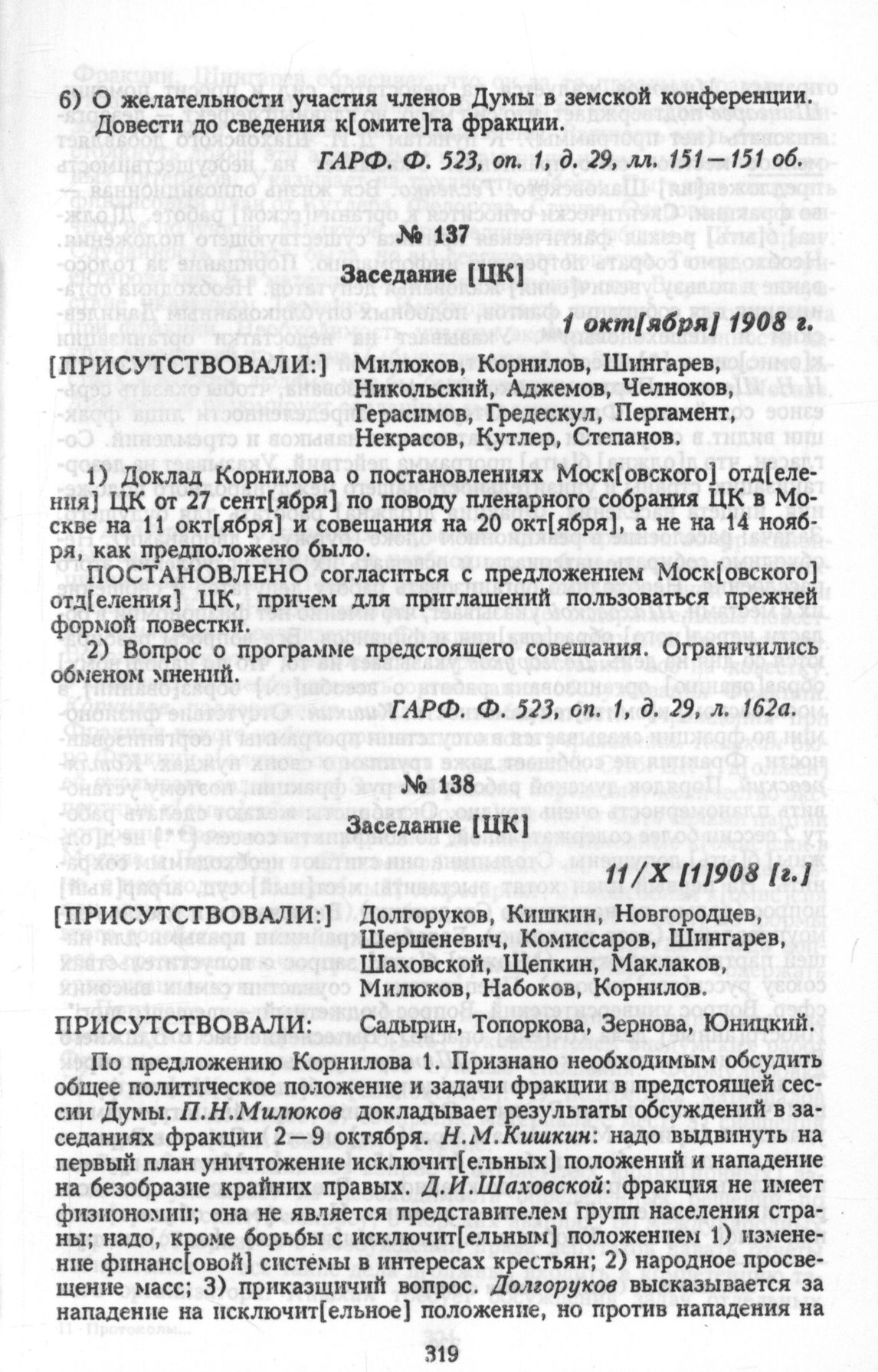 Протоколы Центрального Комитета конституционно-демократической партии. Заседание [ЦК]. 11/X [1]908 [г.]
