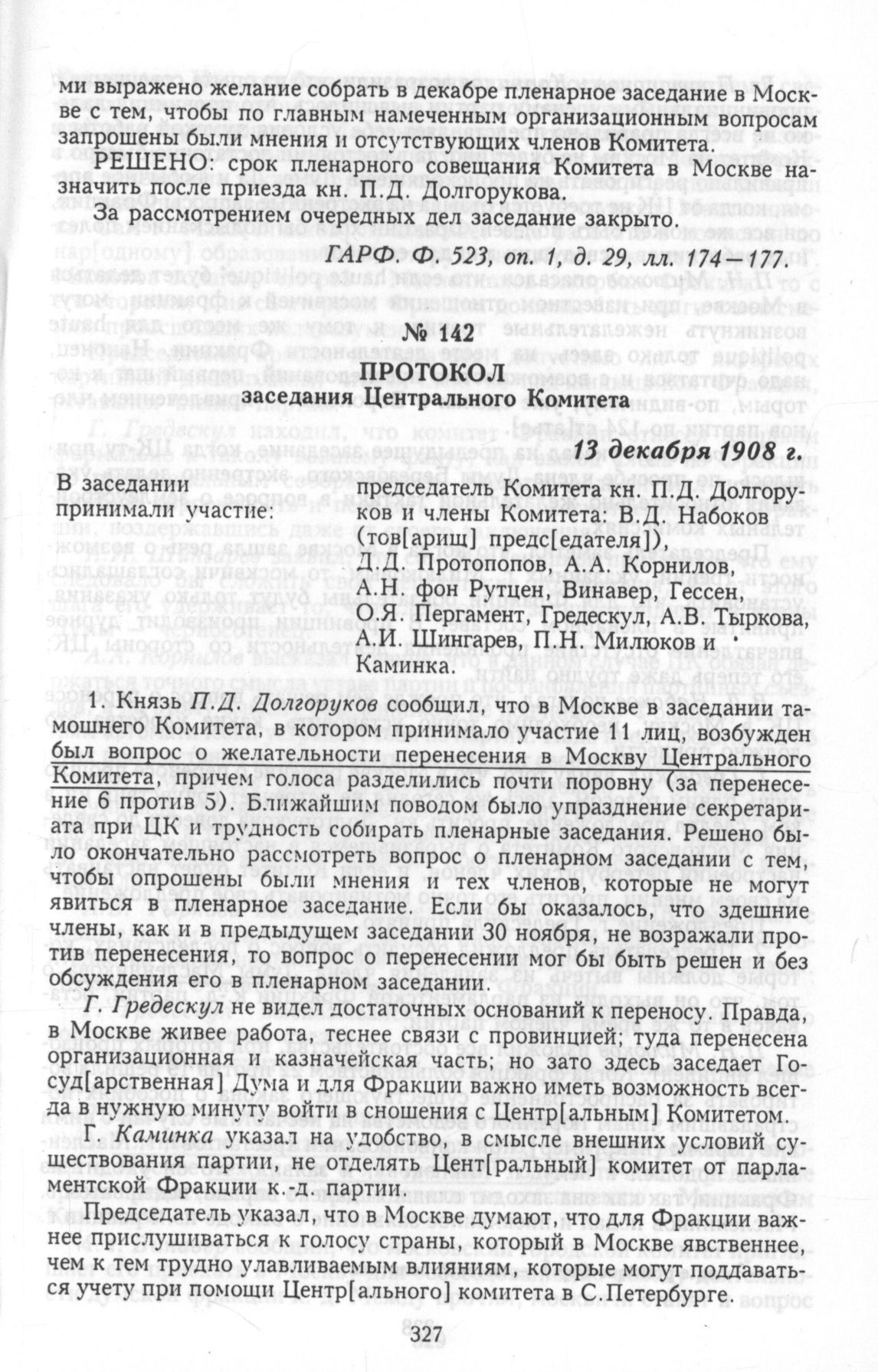 Протоколы Центрального Комитета конституционно-демократической партии. Протокол заседания Центрального Комитета. 13 декабря 1908 года